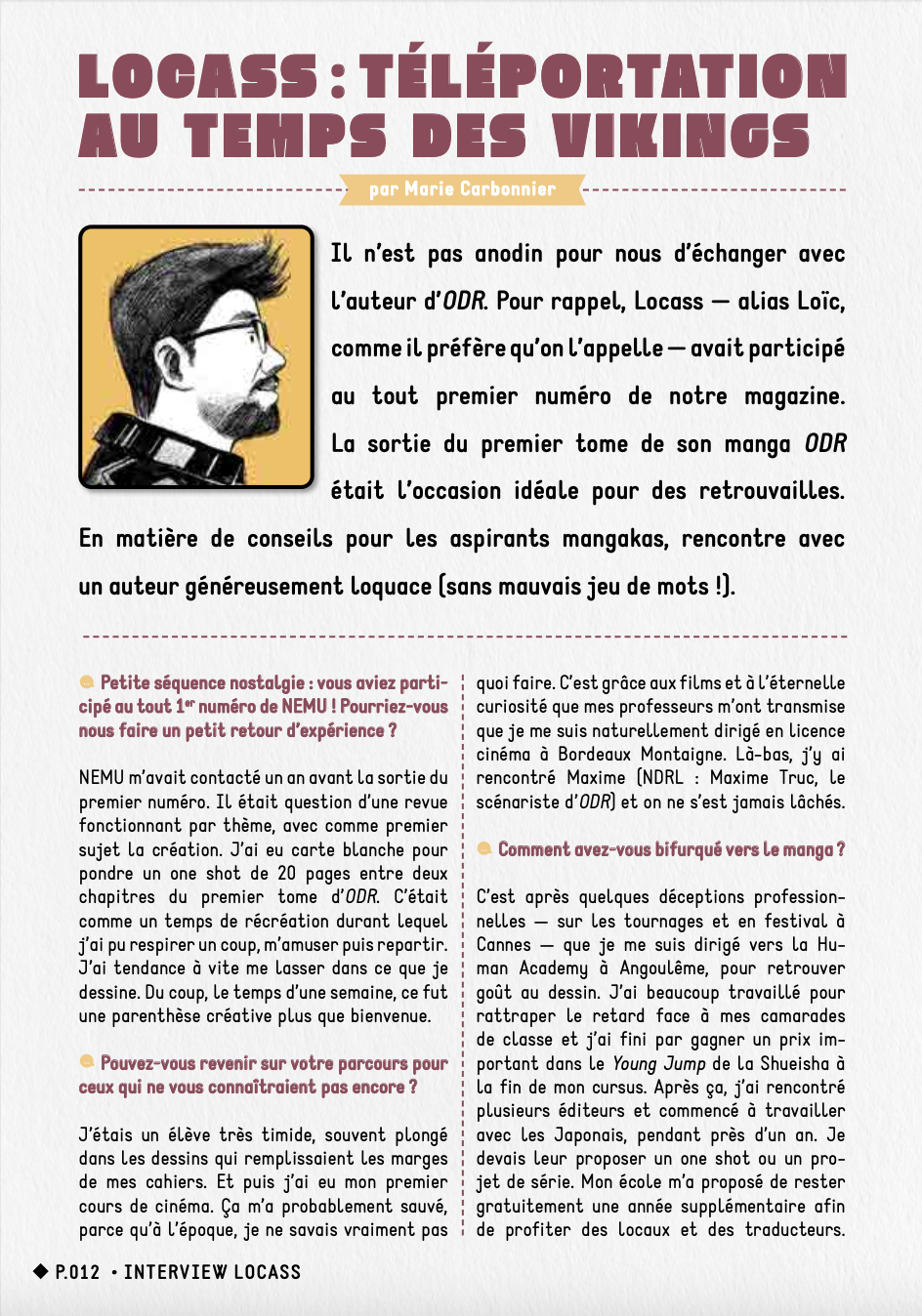 Bienvenue dans NEMU, un magazine qui propose d'accompagner une nouvelle génération d'artistes de bandes dessinées tout en faisant découvrir les coulisses et les secrets de fabrication pour se lancer un jour.